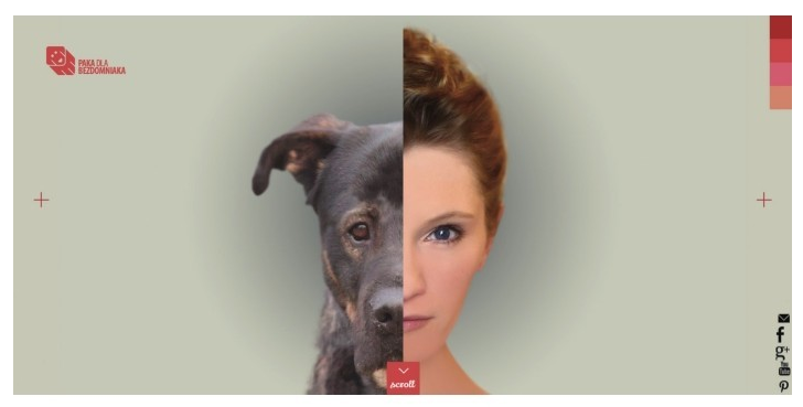 隨著CSS3和HTML5技術的成熟,許多驚艷的效果都能應用在網站設計中了,比如視差滾動、故事游戲等。波蘭某動物保護組織網(見圖5)就非常有創(chuàng)意,它選取了十只動物與它的所有者或相關者,將動物的半張臉同相應人的半張臉結合在一起,作為幅頁面的核心內容,折射出滑動鼠標滾軸,實現(xiàn)各自臉部左上右下的切換,而單擊頁面兩側的“+”“一”會展示出他們詳細介紹和心理感受。