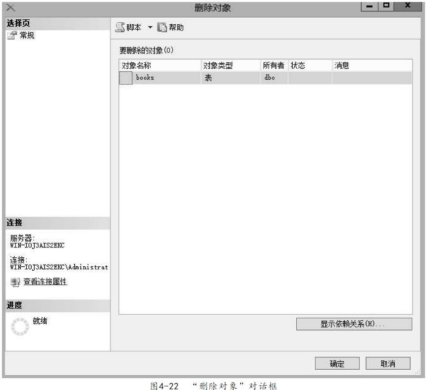 ②在彈出的“刪除對象”對話框中,單擊“確定”按鈕,即可刪除表,如圖4-22所示。