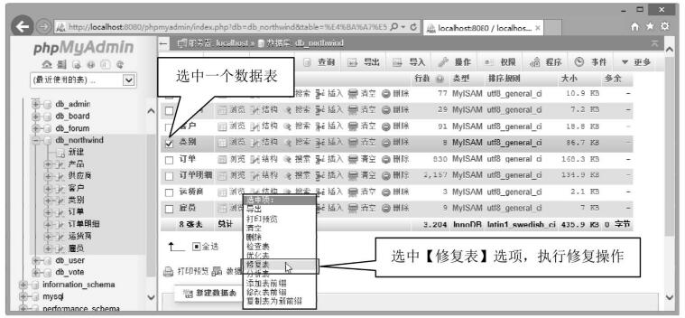 數(shù)據(jù)表損壞時(shí),可以通過phpMyAdmin進(jìn)行修復(fù)。
