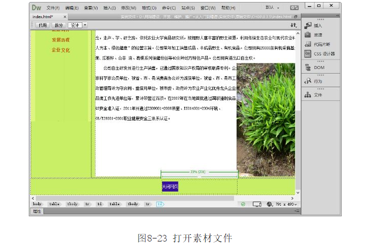 ?打開(kāi)素材文件“CH08/8.3.5/index.html”,選中文本“關(guān)閉網(wǎng)頁(yè)”,如圖8-23所示。