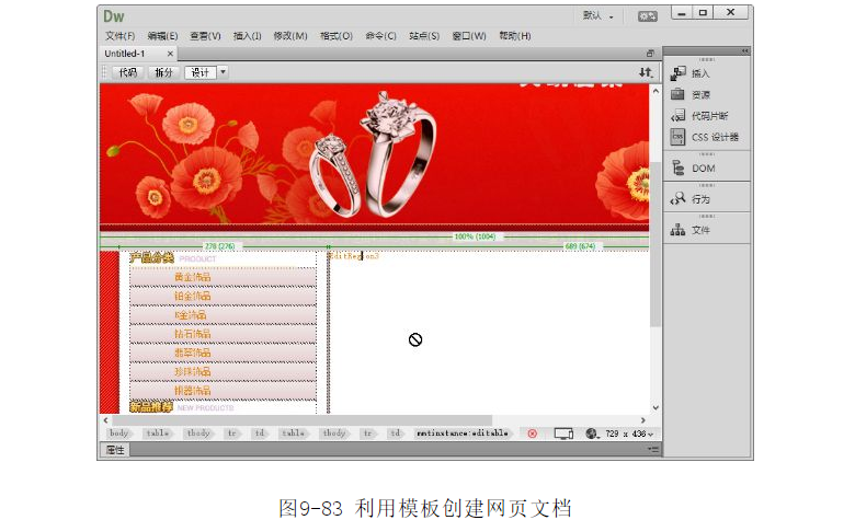 ?單擊【創(chuàng)建】按鈕,創(chuàng)建一個網(wǎng)頁文檔,如圖9-83所示。