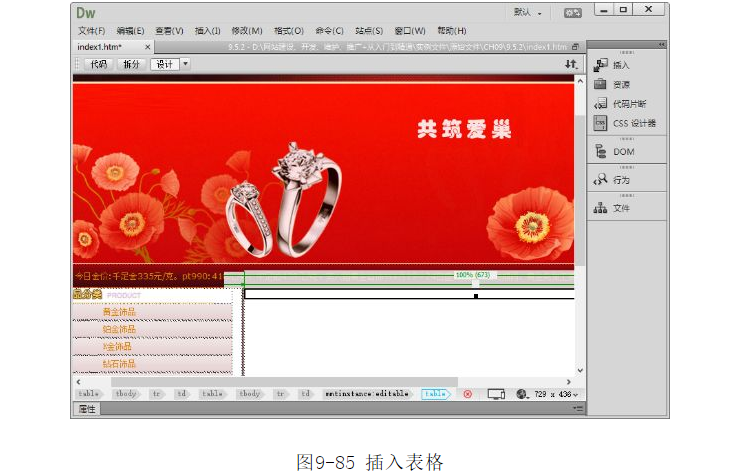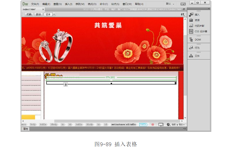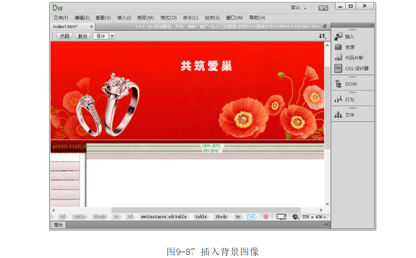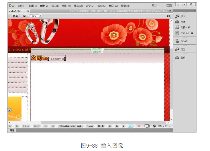 ?將光標(biāo)置于背景圖像上,選擇菜單中的【插入】|【圖像】命令,插入圖像文件“images/l_1_1.jpg”,如圖9-88所示。