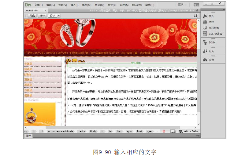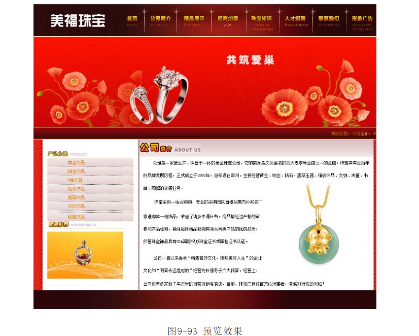 ?保存模板文檔,按F12鍵即可在瀏覽器中預(yù)覽效果,如圖9-93所示。