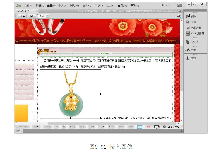 ?將光標(biāo)置于文字中,選擇菜單中的【插入】|【圖像】命令,插入圖像,如圖9-91所示。