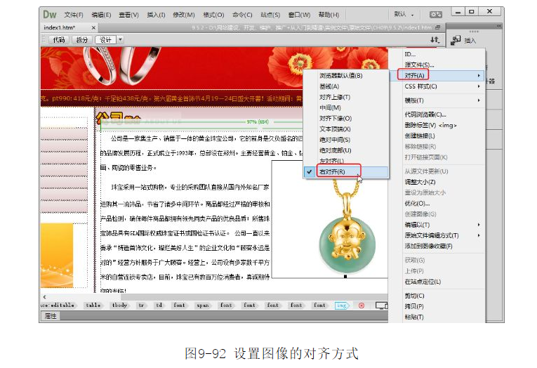 ?選中插入的圖像,單擊鼠標(biāo)右鍵,在彈出菜單中選擇【對齊】|【右對齊】選項(xiàng),如圖9-92所示。