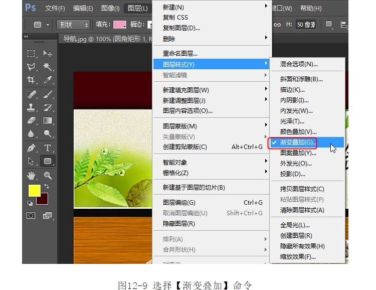 ?選擇菜單中的【圖層】|【圖層樣式】|【漸變疊加】命令,如圖12-9所示。