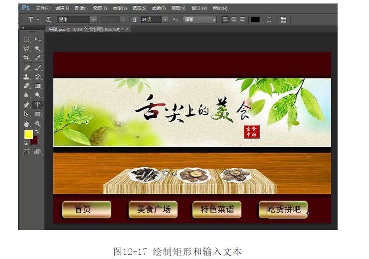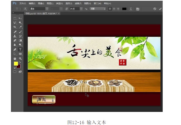 ?選擇工具箱中的文本工具,在按鈕上輸入文本“首頁(yè)”,如圖12-16所示。