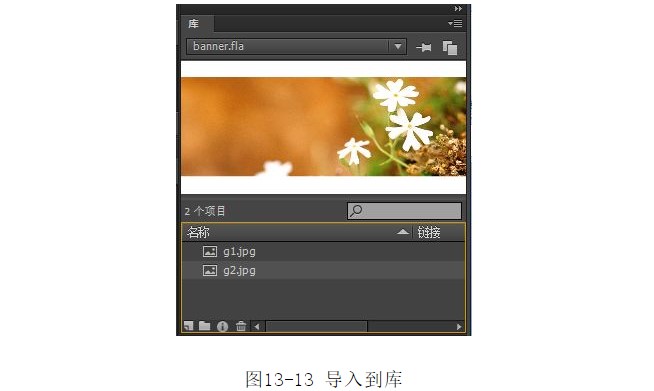 ?單擊【打開(kāi)】按鈕,將圖像文件導(dǎo)入到【庫(kù)】面板,如圖13-13所示。