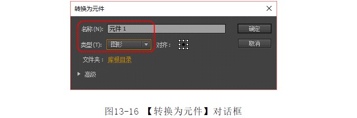 ?選擇菜單中的【修改】|【轉(zhuǎn)換為元件】命令,彈出【轉(zhuǎn)換為元件】對(duì)話框,如圖13-16所示。