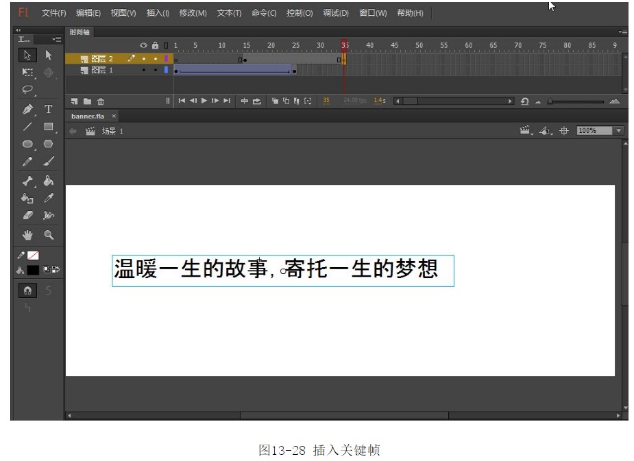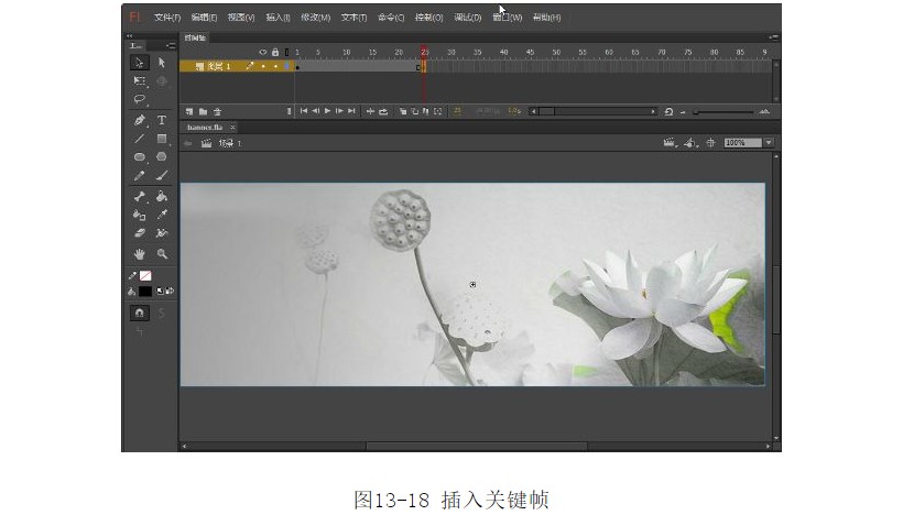 ?選中圖層1的第25幀,按F6鍵插入關(guān)鍵幀,如圖13-18所示。