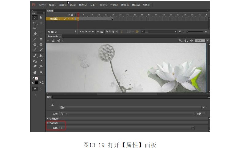 ?單擊選擇第1幀,選擇菜單中的【窗口】|【屬性】命令,打開(kāi)【屬性】面板,如圖13-19所示。