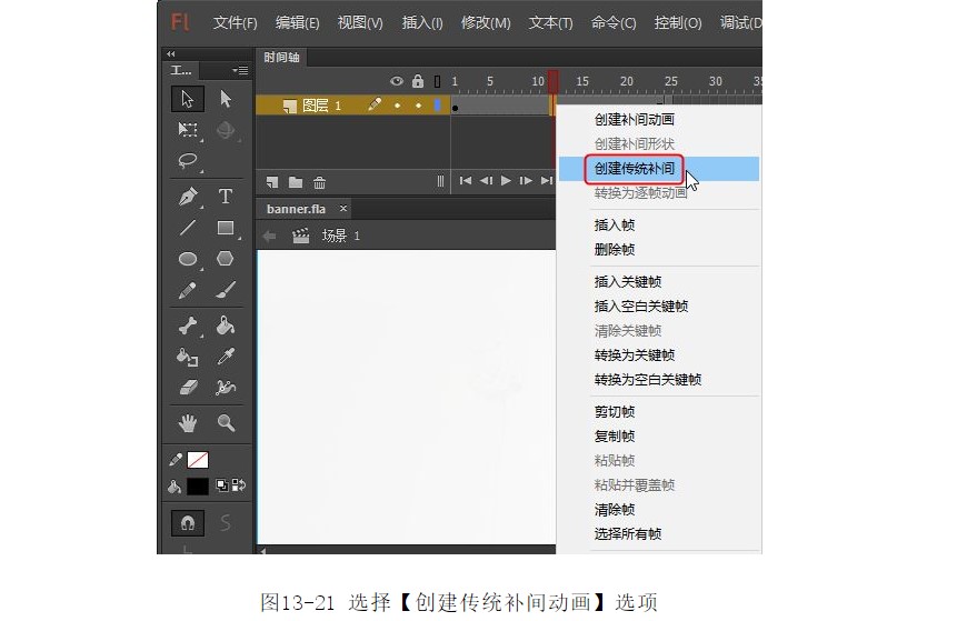 ?選擇以后創(chuàng)建傳統(tǒng)補(bǔ)間動(dòng)畫(huà),如圖13-22所示。