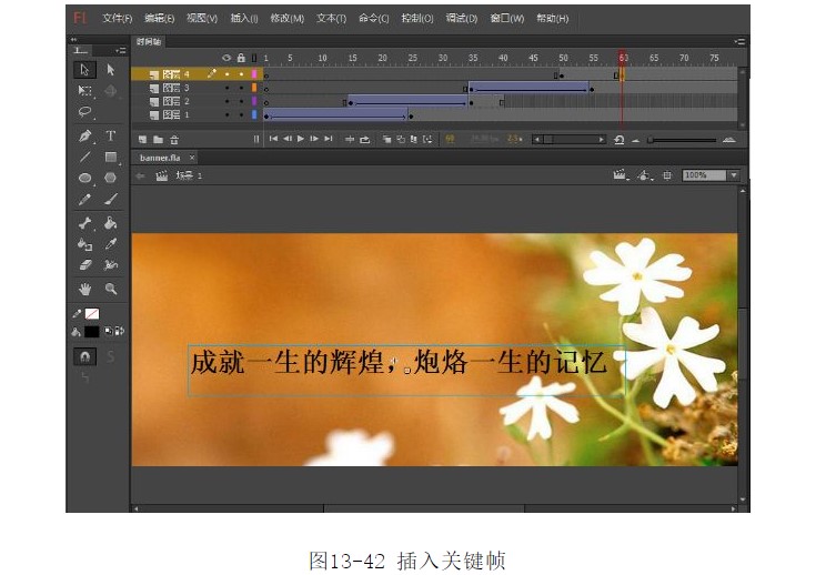 35.選中第60幀,按F6鍵插入關(guān)鍵幀,并調(diào)整元件4的位置,如圖13-42所示。