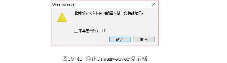 ?單擊【創(chuàng)建】按鈕,即可創(chuàng)建一空白模板文檔。選擇菜單中的【文件】|【另存為模板】命令,彈出Dreamweaver提示框,如圖19-42所示。