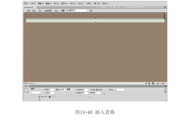?單擊【確定】按鈕,插入表格。在【屬性】面板中將【對齊】設(shè)置為【居中對齊】,如圖19-48所示。