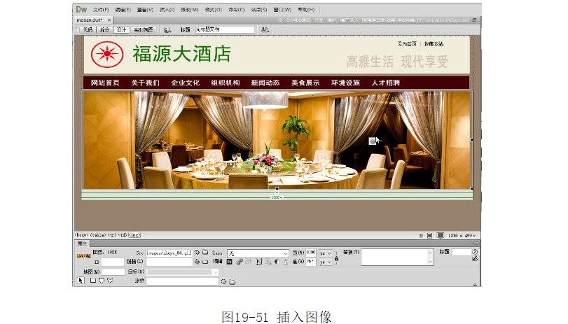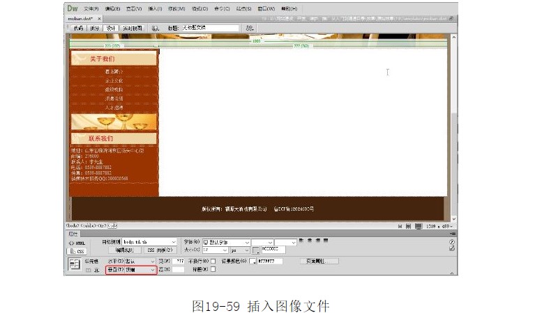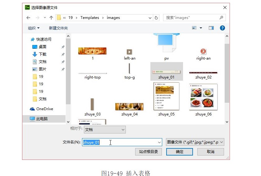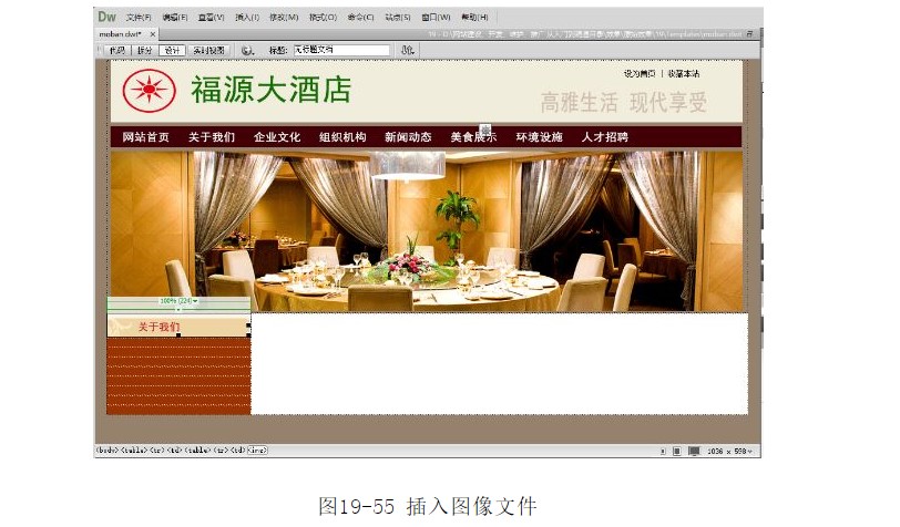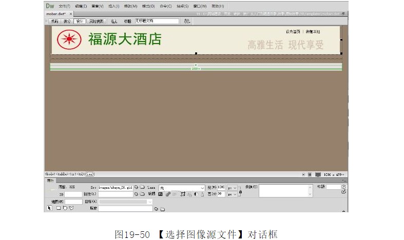 ?在對話框中選擇圖像“images/zhuye_01.jpg”,單擊【確定】按鈕,插入圖像,如圖19-50所示。