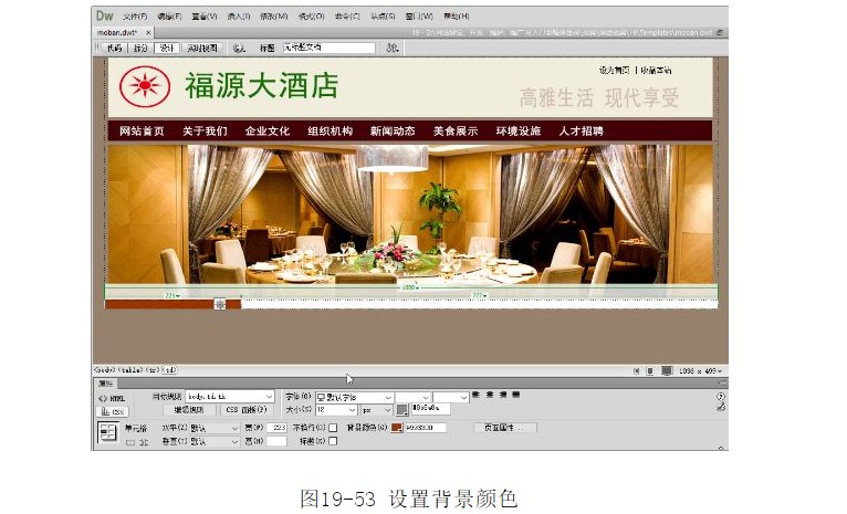?將光標(biāo)放置在第1列單元格中,在【屬性】面板中將【背景顏色】設(shè)置為#993300,將第2列單元格【背景顏色】設(shè)置為#FFFFFF,如圖19-53所示。