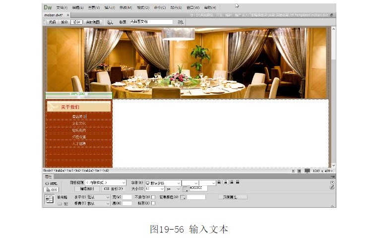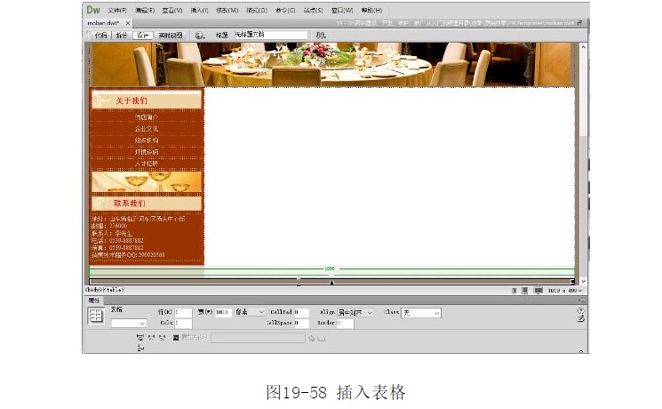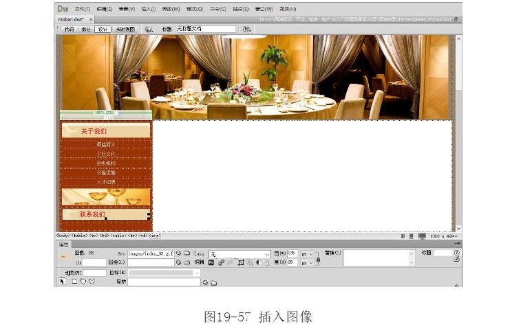 ?在第7~8行單元格中分別插入相應(yīng)的圖像文件“l(fā)eft_01.jpg”和“index_03.gif”,如圖19-57所示。