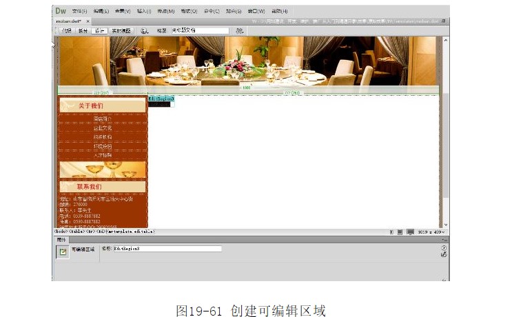 將光標(biāo)置于上面表格的第2列單元格中,選擇菜單中的【插入】|【模板對象】|【可編輯區(qū)】命令,彈出【新建可編輯區(qū)域】對話框,如圖19-60所示。單擊【確定】按鈕,創(chuàng)建可編輯區(qū)域,如圖19-61所示。
