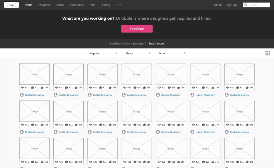2. Dribbble - 設(shè)計類網(wǎng)頁設(shè)計模型