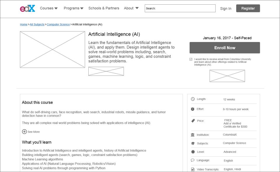 參考點:列表視圖布局edX是一家在線課程提供商,為世界各地的學(xué)生提供了各種學(xué)科的在線大學(xué)課程,其中也包括一些免費(fèi)的課程。整個網(wǎng)頁模板設(shè)計元素以圖片組件和文字組件為主,邏輯清晰,簡明直觀。