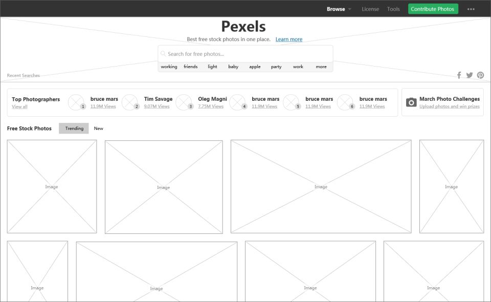 6. Pexels - 圖片素材類網(wǎng)頁設(shè)計模板