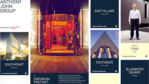 Anthony John Group使用方塊來展示他們創(chuàng)作的各個項目,還有關(guān)鍵的公司信息,比如“幕后團隊”。主頁的規(guī)劃與構(gòu)建很棒,但也結(jié)合緊密。很明顯,他們致力于創(chuàng)造像這個頁面一樣優(yōu)雅的高端建筑設(shè)計,如果沒有這些方塊,可達不到這樣的效果。