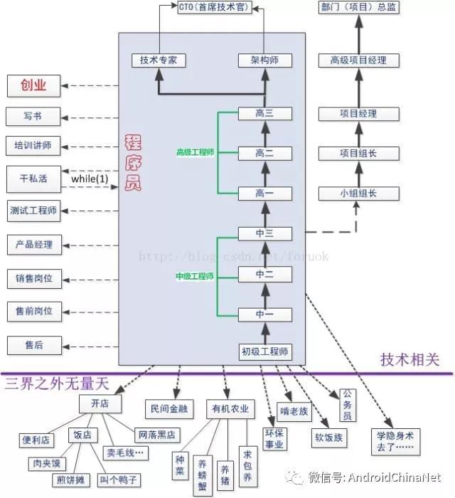 APP開發(fā)等離不開程序員最近在琢磨程序員到底路在何方,經(jīng)過不斷的自虐和代入,終于在迷霧森林中得圖一張,看之豁然開朗。獨(dú)樂樂不如眾樂樂,share了: