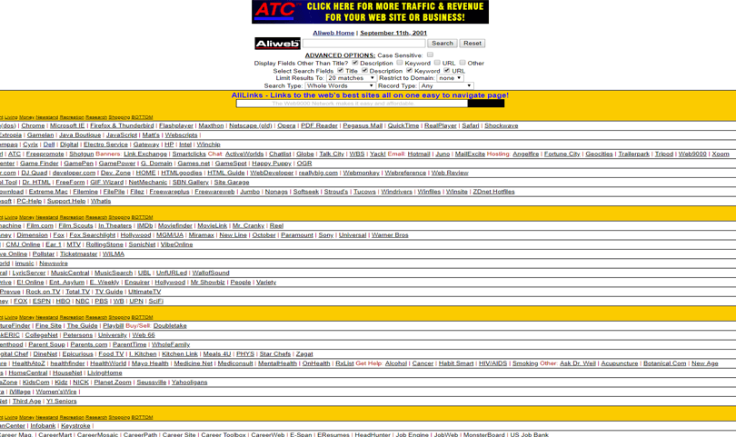 Aliweb 被認(rèn)為是世界上最古老的搜索引擎之一,通過搜索欄能夠找到你想獲取的內(nèi)容。當(dāng)然,作為一個(gè)90年代的網(wǎng)站,將信息塞滿整個(gè)頁面,用小號(hào)字體確保頁面能夠承載盡可能多的內(nèi)容,也談不上什么錯(cuò)誤,畢竟當(dāng)時(shí)大家還不是那么明白用戶體驗(yàn)這個(gè)事情的重要性。雖然這個(gè)網(wǎng)站在設(shè)計(jì)上說不上是辣眼睛,但是費(fèi)眼睛是一定的。