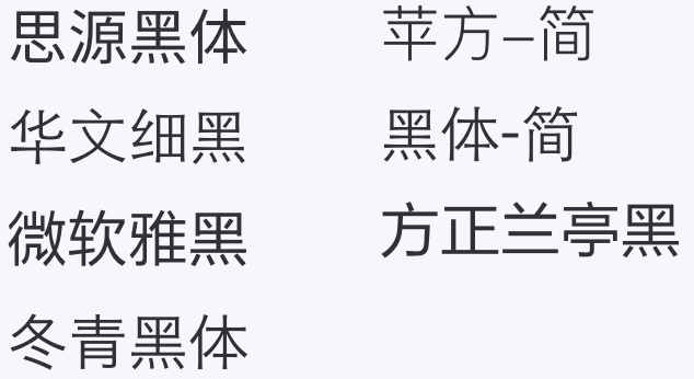 中文字體推薦線上中文字體推薦使用思源黑體、華文黑體、冬青黑體、微軟雅黑、蘋方-簡、黑體-簡、方正蘭亭黑。其中 iOS 系統(tǒng)默認中文字體是「蘋方PingFang」,Android 系統(tǒng)中文字體使用「思源黑體Noto Sans CJK」。介紹下「思源黑體」這款字體,它是由 Google 和 Adobe 合作開發(fā)出來的,風格介于現(xiàn)代和傳統(tǒng)之間,可以廣泛用于多種途徑,比如手機、平板、桌面的用戶界面、網(wǎng)頁瀏覽或者電子書閱讀等。它為人們帶來了愉悅和高效的信息閱讀體驗,并且是免費的。