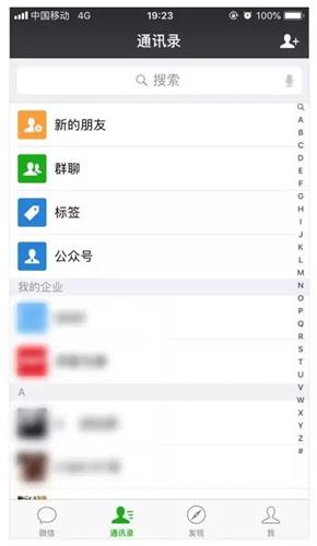 在微信寸土寸金的頁面上,作為第二個(gè) tab,無疑是代表著特別重要的地位,但是呢?這個(gè) tab 內(nèi)容都是和聯(lián)系人相關(guān)的。用戶進(jìn)入這個(gè)頁面操作的頻率很小,為什么要將這么重要的位置給予通訊錄聯(lián)系人呢?