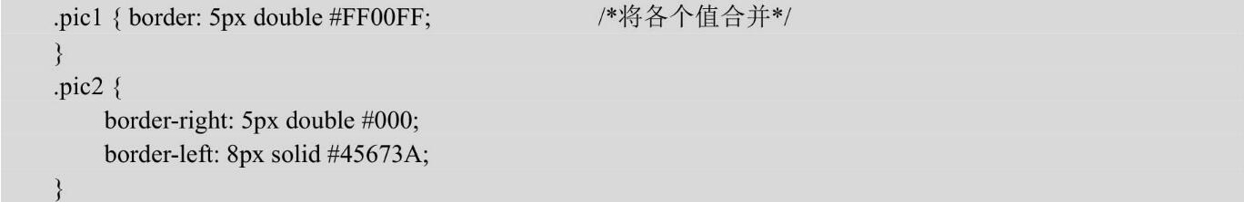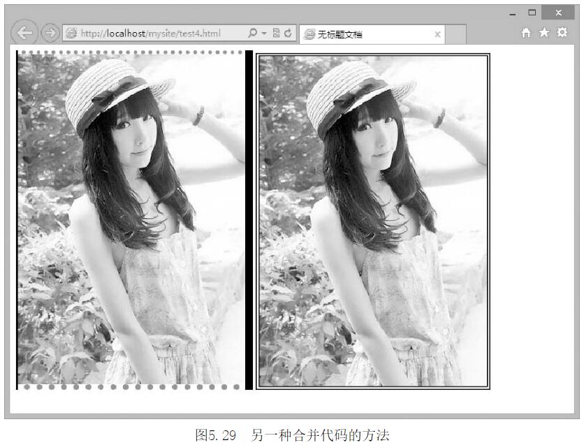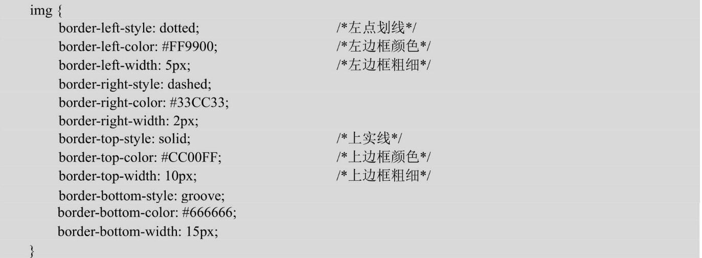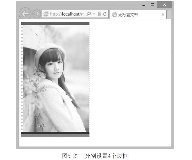 用來定義圖片邊框樣式。其顯示效果如圖5.27所示,圖片的4個(gè)邊框被分別設(shè)置了不同的樣式。