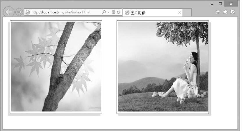 在網(wǎng)頁(yè)中插入圖片是再平常不過(guò)的事情了,有時(shí)為了美觀的需要,可以給圖片加上陰影,讓圖片有種特殊的效果,css可以為圖片加上陰影嗎?答案是肯定的,在本例中將給讀者介紹為圖片加陰影的方法,演示效果如圖5-51所示。