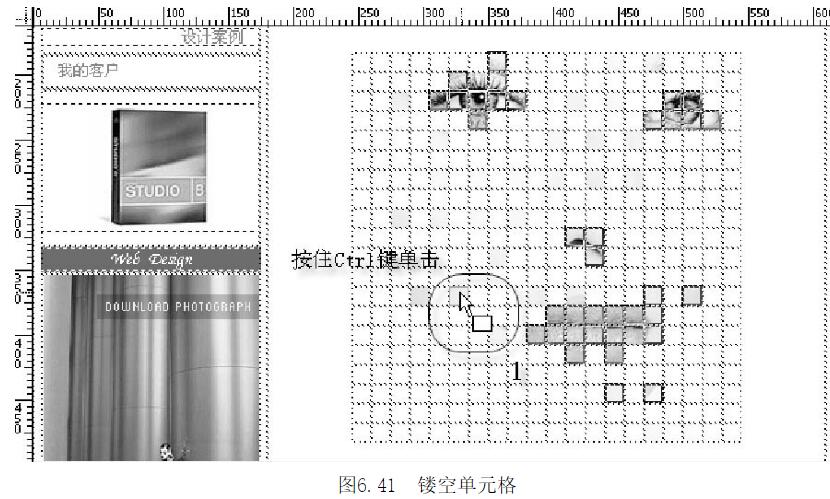 第2步,拖選所有單元格,設(shè)置所有單元格大小為15×15像素,背景為白色,則把表格的背景圖像遮蓋住,如圖6.40所示。