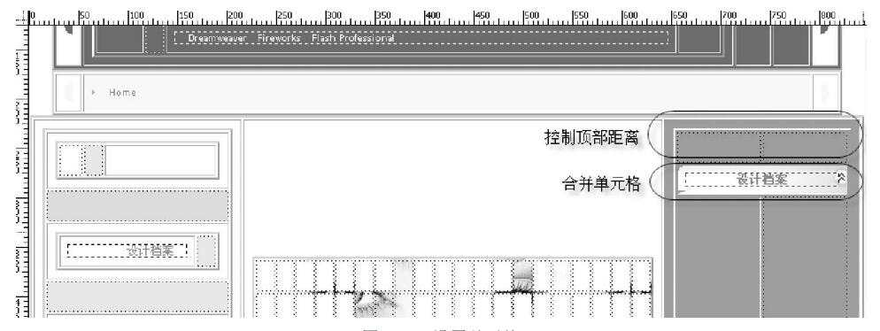 第3步,插入表格的第1行用來控制表格與頂部標題欄的距離,合并第2行的兩個單元格,并設(shè)置合并單元格背景圖像,在設(shè)置之前應把第2行高度設(shè)置為背景圖像的高度,如圖6-44所示。