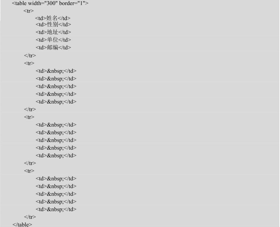 第2步,在該單元格中插入個4行2列的表格,設(shè)置寬度為180像素,居中顯示,效果如圖6-43所示