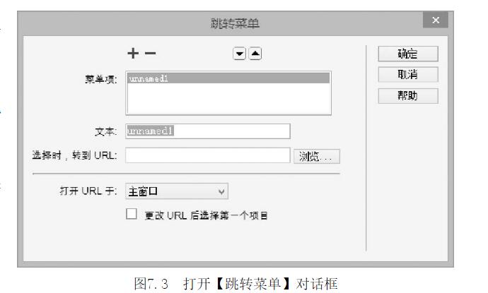 第3步,打開【跳轉菜單】對話框,如圖7.3所示,