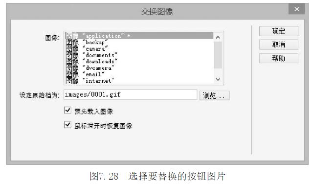第5步,打開【交換圖像】對話框,如圖7-28所示,單擊【瀏覽】按鈕,在【選擇圖像源文件】對話框中選擇要替換的按鈕圖片。