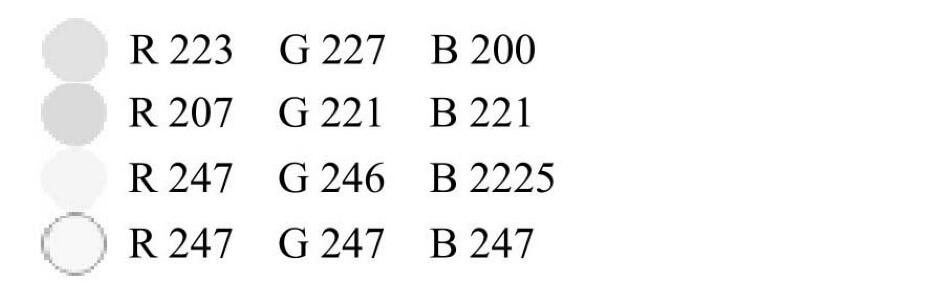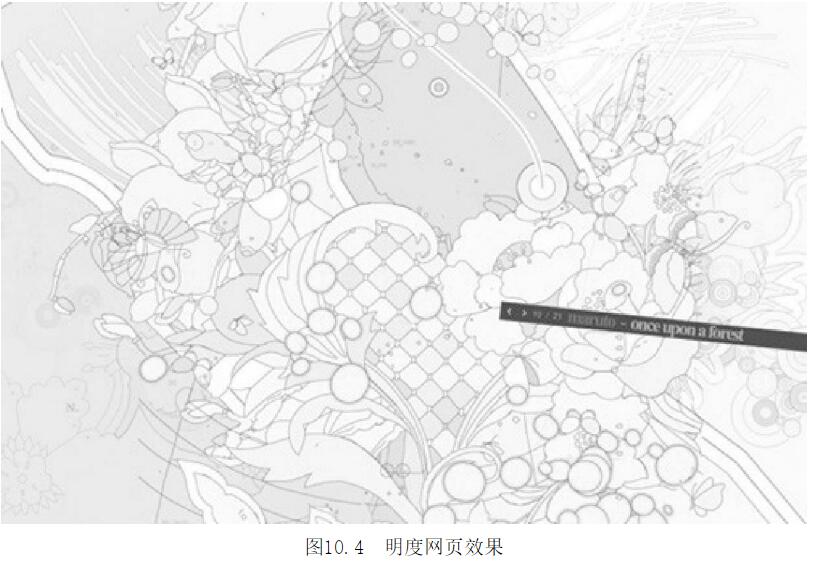 從圖10.4所示的網(wǎng)頁所選取的4個主要色塊的RGB數(shù)值來看,這4塊色彩組合顯示RGB數(shù)值很高,接近于最高值255。RGB相互間數(shù)值相近由于有RG的高數(shù)值與B高數(shù)值混合,整個網(wǎng)頁給人的感覺非常執(zhí)調(diào),柔和雅致,心情愉悅。