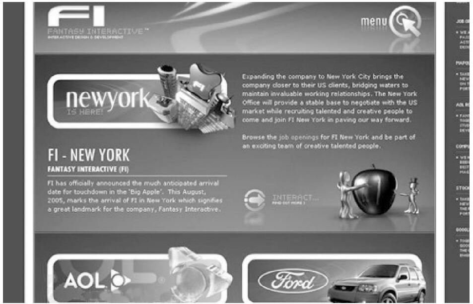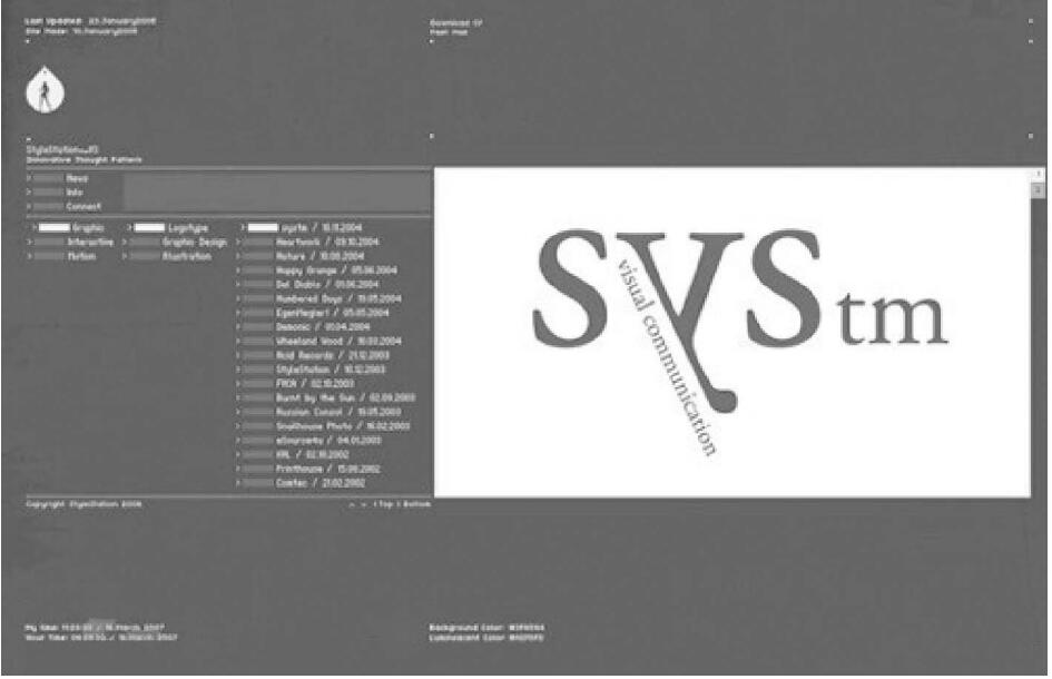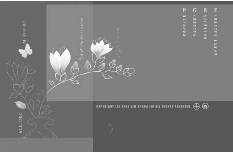 這是個灰色階變化較多的頁面,形成較有節(jié)奏塊面分明的韻律美感。這變化改善了灰色容易形成的呆板單調(diào)特性。