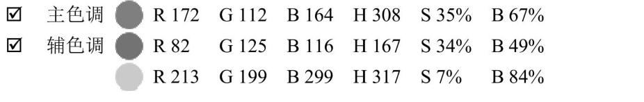 綠色被譽(yù)為紫色的絕配色。主色調(diào)是飽和度降低明度較低的紫色,輔色調(diào)是色彩明度較高的草綠色及沉穩(wěn)的源藍(lán)色。
