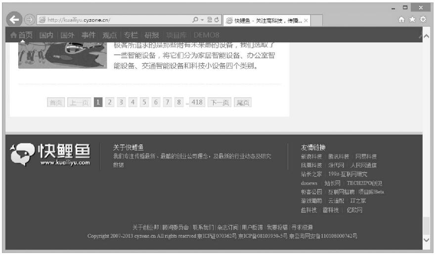如圖12 2所示的頁面底部顯示的頁碼數(shù)字導(dǎo)航鏈接,引導(dǎo)瀏覽者在條線上前后定位。