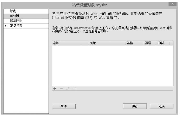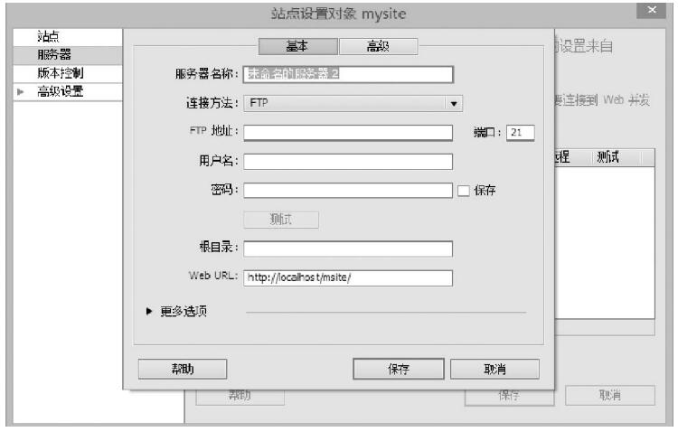 第2步,在Dreamweaver中,選擇【站點】【新建站點】命令,打開【站點設置對象mvsitel對話框,單擊【服務器】選項,切換到服務器設置面板。