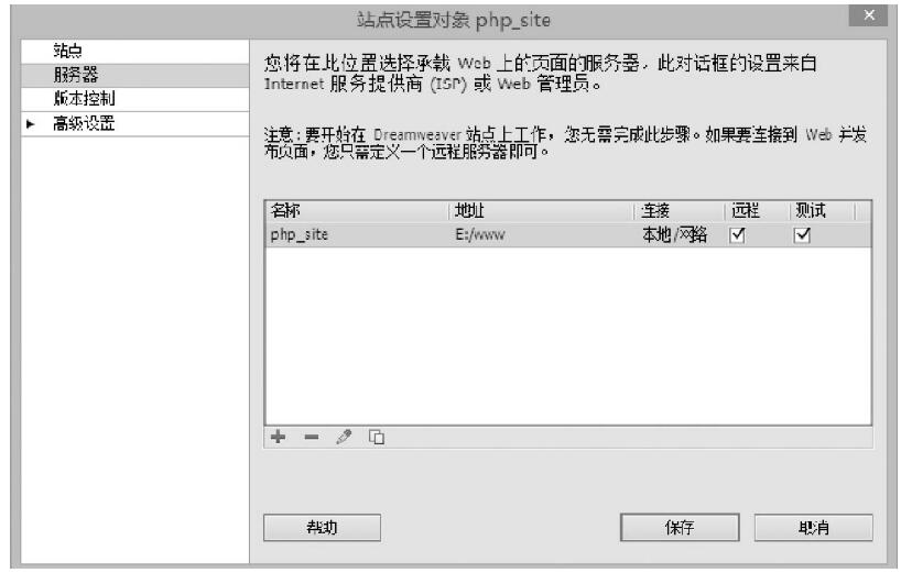 第6步,設置完畢,單擊【保存】按鈕,返回【站點設置對象php_site】對話框,這樣即可建立個動態(tài)網(wǎng)站,如圖13.7所示。