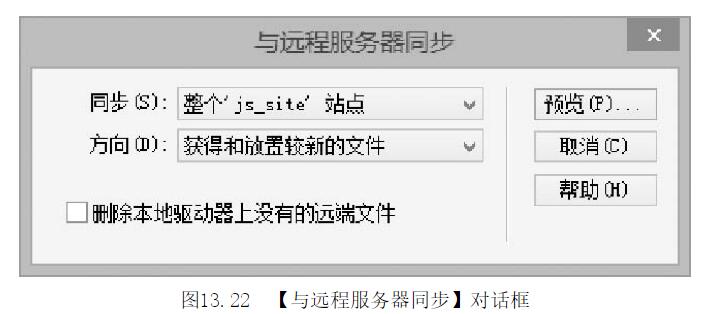 第4步.單擊【文件】面板中的【同步】按鈕此時,Dreamweaver會打開【與遠程服務器同步】對話框,如圖13-22所示。