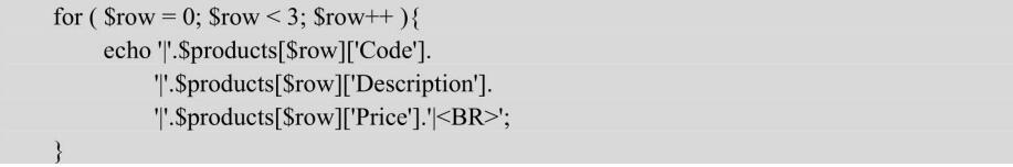echo'|'.$products[1][0].'|'.$products[1][1].'|'.$products[1][2].'|<br/>';