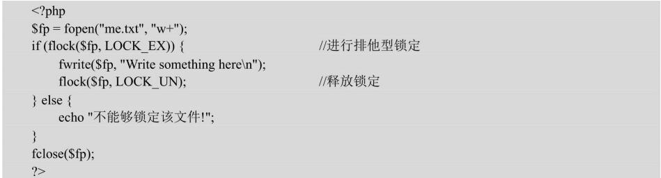 由于flock()需要一個文件指針,因此可能不得不用一個特殊的鎖定文件來保護打算通過寫模式打開的文件的訪問,在fopen()函數(shù)中加入"w"或"w+"。