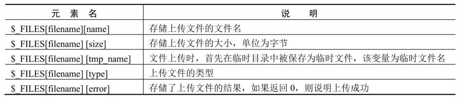 表21.4 預(yù)定義變量$_FILES元素