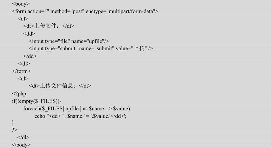 【示例】如何獲取上傳文件的相關(guān)信息,頁面代碼如下($_FILES.php),演示效果如圖21.8所示。