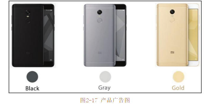 (3)產(chǎn)品廣告圖。在這個(gè)區(qū)域,一般會(huì)放置產(chǎn)品的廣告圖、SKU介紹、產(chǎn)品屬性、產(chǎn)品賣(mài)點(diǎn)、顏色對(duì)比等,這個(gè)區(qū)域主要是對(duì)產(chǎn)品進(jìn)行廣告宣傳。圖2-17是針對(duì)同款產(chǎn)品不同顏色的展示。
